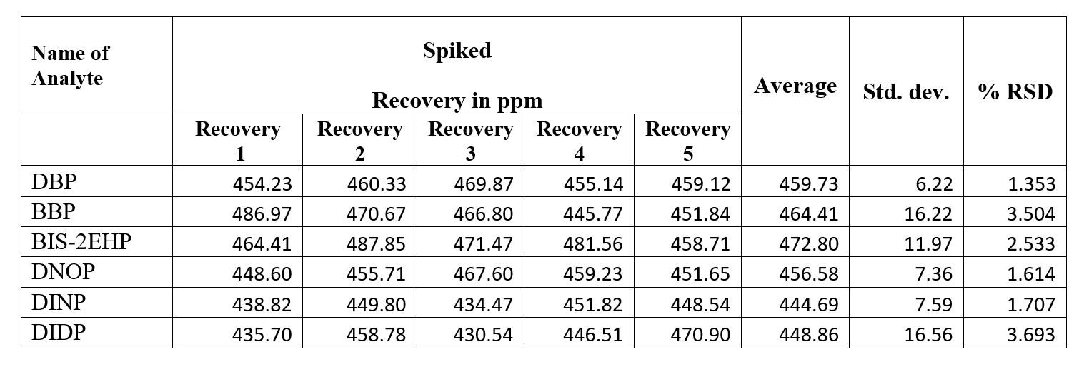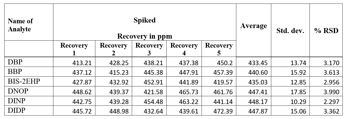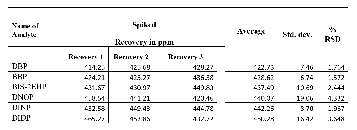❤ Sample is spiked with three replicate analyses at the level of 500 mg/kg for DBP, BBP, BIS-2EHP &